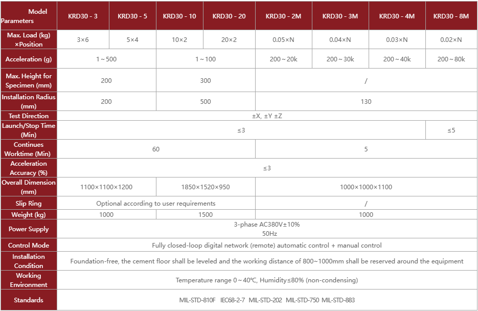 KRD32 serisi standart dışı sabit ivme test makinesi, askeri ürünler için dinamik santrifüj hareketini, çift çevresel kuvvetli santrifüj hareketini ve merkezî yüksek hızlı dönme hareketini simüle eden bir test ekipmanıdır.