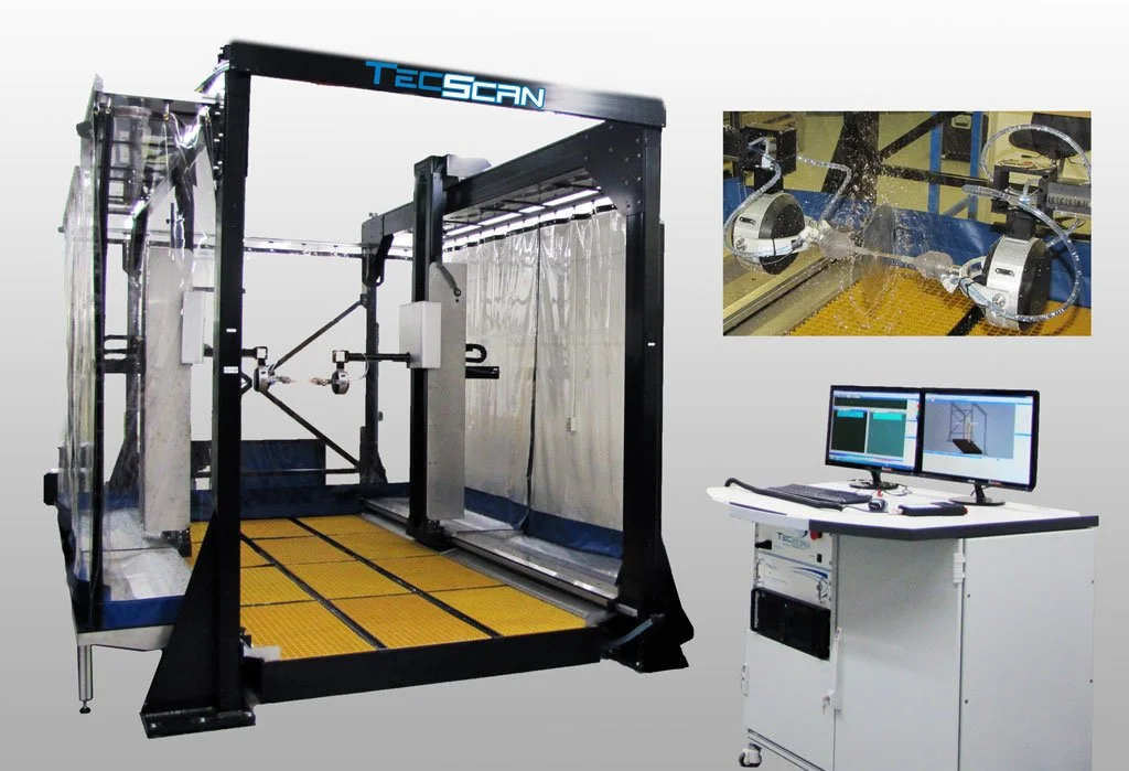 TecScan’in NDT Ultrasonik Portal Sistemleri, büyük yapıların ve parçaların tahribatsız kalite testleri ve taramalı taraması için tasarlanmış endüstriyel Squirter tarayıcılardır. Portal Sistemleri su jeti bağlantısı kullanır ve genellikle bir Endüstriyel Mekanik Tarayıcı ve Sistem İş İstasyonuna sahip bir Kontrol Odasından oluşur. Mekanik tarayıcı, 12’ye kadar bağımsız eksen barındırabilen büyük bir endüstriyel Kartezyen koordinat robotudur. Yapı, daha fazla sertlik için birbirine kaynaklanmış yapısal çelik bileşenlerden (Çelik boru, I-Kirişler, Çelik Levha vb.) yapılmıştır. Kontrol Odası tüm portal elektronik bileşenlerini içerir ve sistem kontrolü ve veri analizi için iki sistem kullanıcısını barındıracak şekilde tasarlanmıştır.